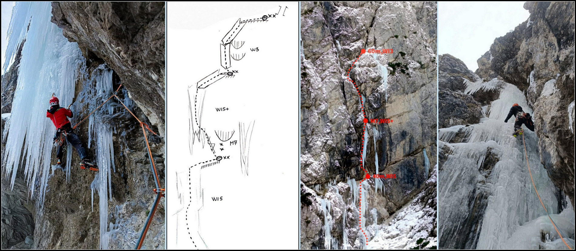 Dolga je 130m, težavnosti M7, WI5+.