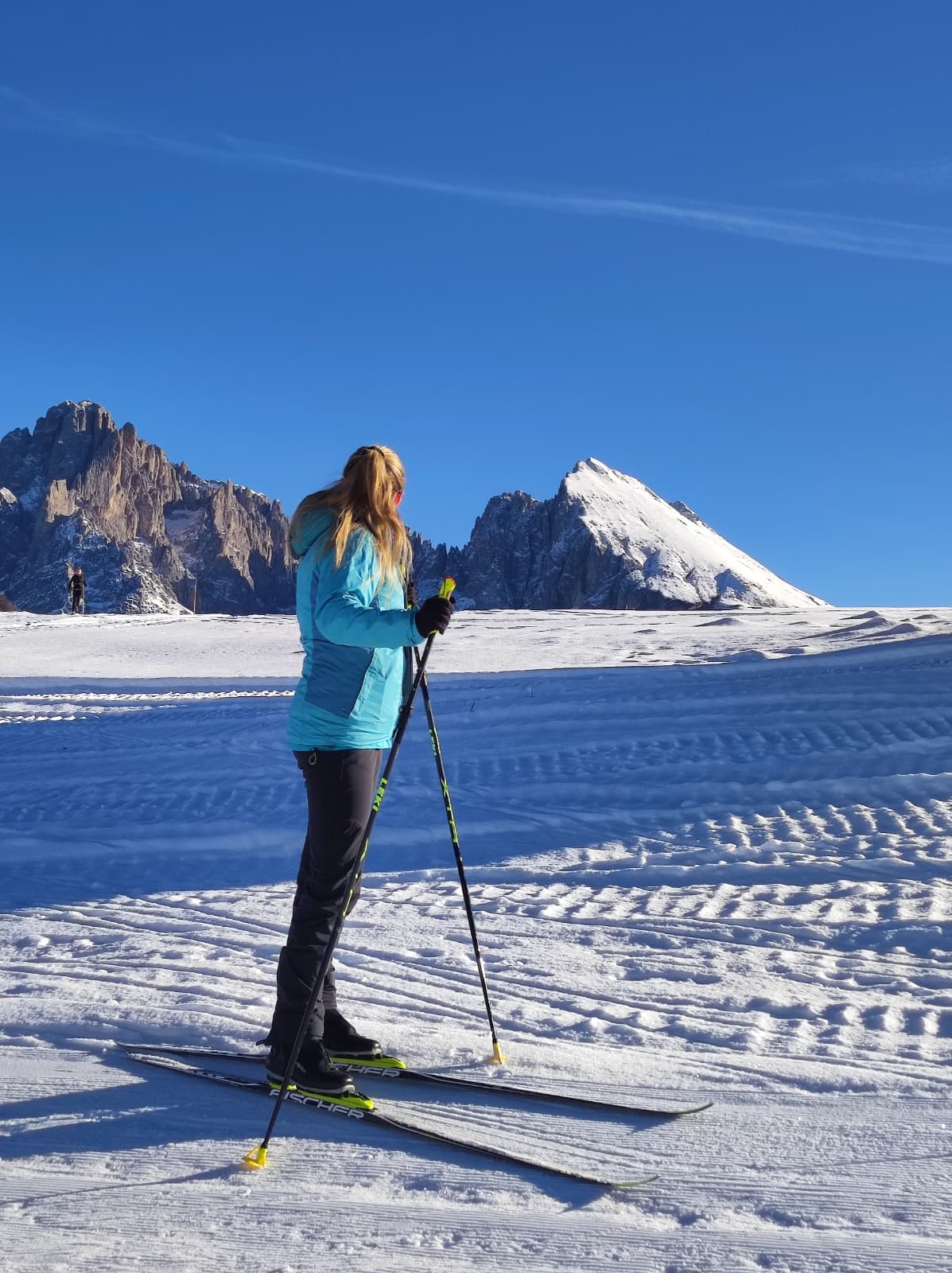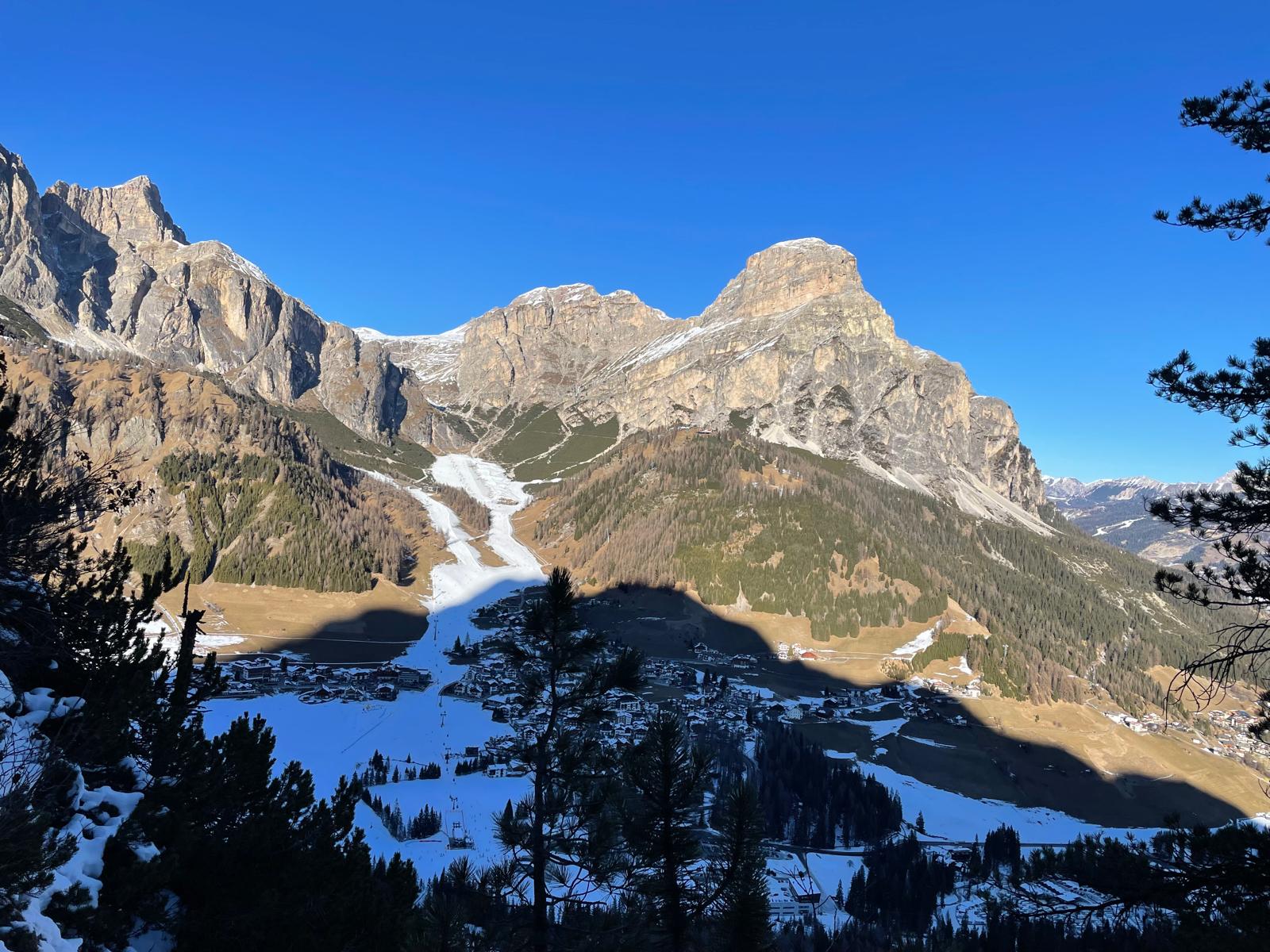 Tako smo se zgodaj zjutraj odpravili v Colfosco proti Damoklejevemu meču. Tudi če smo bili relativno zgodnji smo kar eno uro čakali, da smo lahko varno vstopili v smer. In se je začelo…